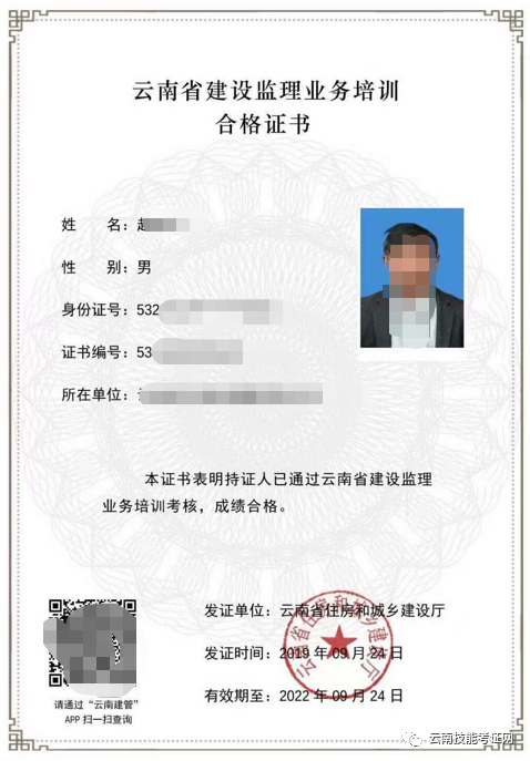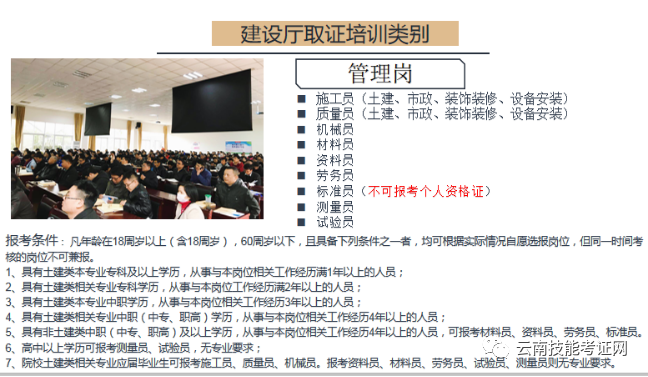 建筑八大员证,由“云南住房和城乡建设厅”颁发,证书每3年进行一次“再教育继续学习”,如果证书过期将需要重新考取!